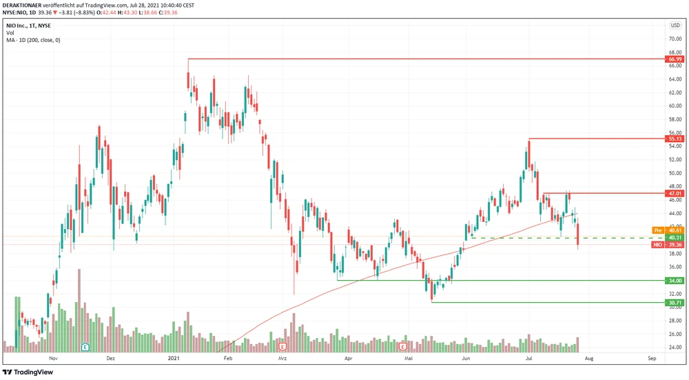 Die Aktie des chinesischen E-Autobauers Nio hatte gestern einen besonders schwachen Handelstag. Der Kurs sackte zeitweise zweistellig ab. Auch eine wichtige Unterstützung konnte den Rücksetzer nicht verhindern. Diese Marken müssen Anleger jetzt beachten.