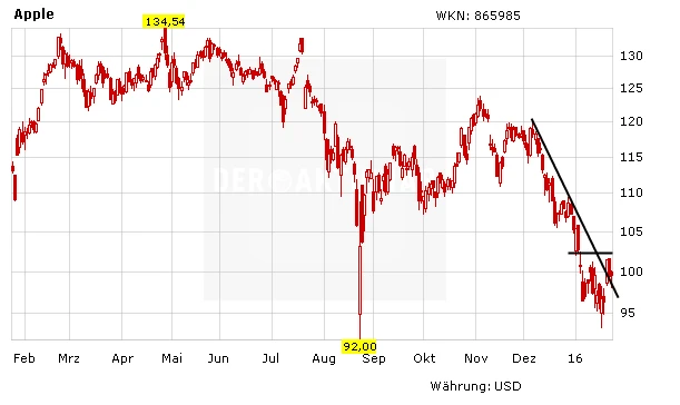 Im Zuge der Schwäche des Gesamtmarktes hat die Apple-Aktie seit Jahresbeginn rund fünf Prozent an Wert verloren und scheint mit einem 2016er-KGV von 10 nun kaufenswert. Heute gegen 22:30 Uhr steht für die Aktionäre aber die Stunde der Wahrheit an.