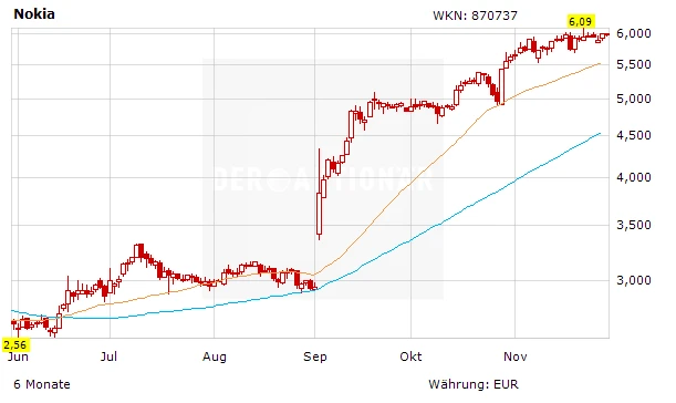 Investierte Anleger halten an der Nokia-Aktie fest. Neueinsteiger sollten abwarten, bis die Aktie die 6-Euro-Marke nachhaltig überwunden hat. Dann dürfte der Titel schnell weiter anziehen.