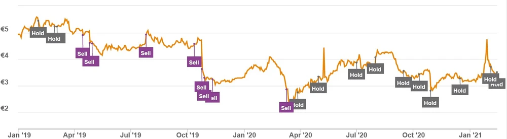 Die Konsens-Schätzungen der 33 Analysten sehen ein Kursziel von 3,67 Euro, was vom aktuellen Kursniveau gerade einmal einem Aufschlag von etwa fünf Prozent verspricht.