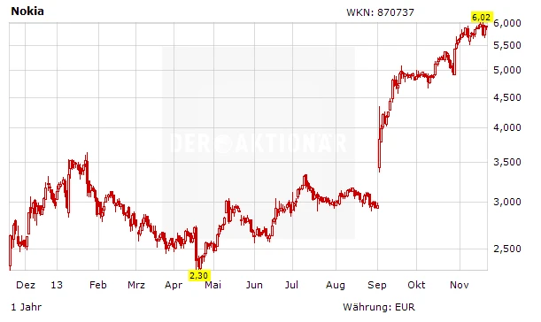 DER AKTIONÄR bleibt positiv gestimmt. Investierte Anleger bleiben am Ball, das Kursziel liegt vorerst bei 6,50 Euro. Für Fantasie sorgt die Möglichkeit, dass die Nokia-Aktionäre eine Sonderdividende erhalten– was dem Kurs einheizen dürfte.
