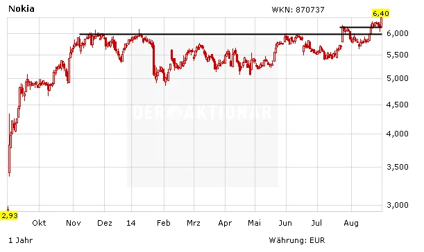 Nokia hatte am Freitag ein neues Jahreshoch markiert und ein frisches Kaufsignal generiert. Damit ist der Weg in Richtung 7,00 Euro frei. Die Indexaufnahme sollte auch Index orientierte Fonds dazu veranlassen, das Papier aufzustocken, was den Kursverlauf in den nächsten Wochen unterstützen sollte.