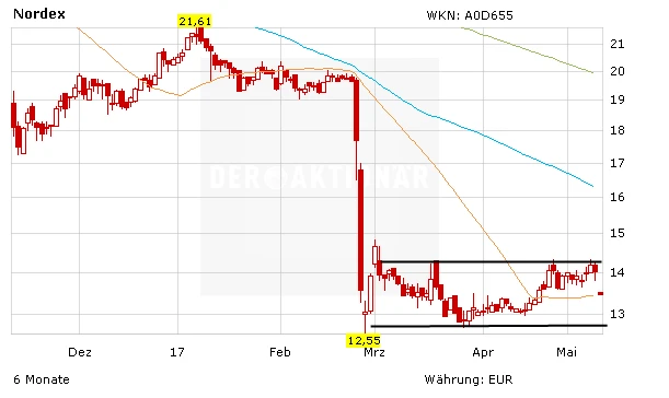 Anleger können auf dem aktuellen Niveau einen Fuß in die Tür stellen. Eine nachhaltige Trendumkehr bei Nordex wird nicht von heute auf morgen stattfinden. Anleger müssen Geduld mitbringen. Nach dem starken Kursrückgang in den letzten Monaten stehen die Chancen für ein Comeback des ehemaligen Börsenlieblings gut.
