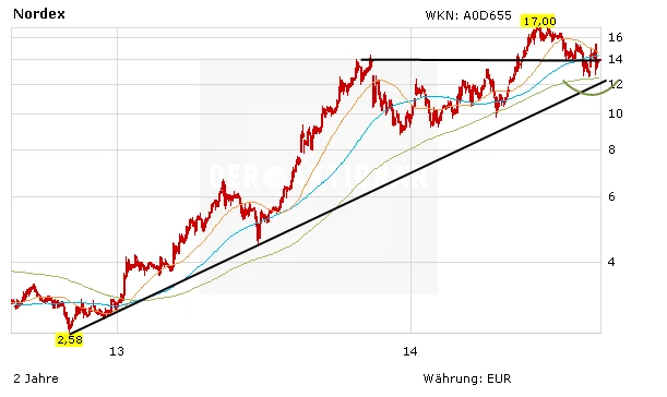 Der Grundtenor für die Nordex-Aktie bleibt positiv. Goldman Sachs sieht nach den Zahlen ein Kursziel von 18,20 Euro. Analyst Sebastian Growe von der Commerzbank hat die Einstufung für die TecDAX-Aktie auf "Buy" mit einem Kursziel von 16 Euro belassen. Die vom Markt missverstandenen Unternehmensziele böten eine Kaufchance. Zu guter letzt rät auch die Deutsche Bank zum Kauf der Nordex-Aktie. Mehrere Sondereffekte hätten im zweiten Quartal die Bruttomargen belastet. Die negative Marktreaktion auf das Zahlenwerk betrachtet Analyst Alexander Karnick als Kaufgelegenheit. Sein Kursziel lautet 17 Euro.