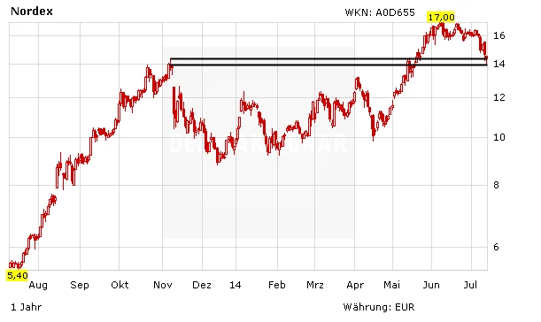 DER AKTIONÄR ist dagegen deutlich zuversichtlicher. Auch durch den Rücksetzer wird die Ausgangslage für die Nordex-Aktie nicht schlechter. 1,5 Milliarden Euro wird der Windkraftanlagenbauer im laufenden Jahr an Umsatz stemmen, bei einer Marge zwischen 3,5 und 4,5 Prozent liegen. Hinzu kommt: Die Auftragslage ist gut.