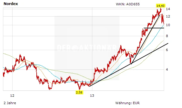 Das Unternehmen setzt den guten Newsflow fort, die Aktie gönnt sich eine Verschnaufpause. Nordex hat einen weiteren Auftrag in England an Land gezogen. Der Windanlagenhersteller liefert neun 2,5-Megawatt-Turbinen für den walisischen Windpark 'Mynydd Bwllfa'. „Es ist für uns von großer Bedeutung, dass wir im Stammmarkt Großbritannien mit unserer Starkwind-Technologie bei einem Bestandskunden wiederholt punkten“, sagt Nordex-Vorstandsmitglied Lars Bondo Krogsgaard. Damit setzt das Team um Nordex-Vorstand Jürgen Zeschky den erfolgreichen Kurs der letzten Monate fort.