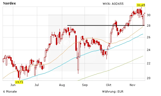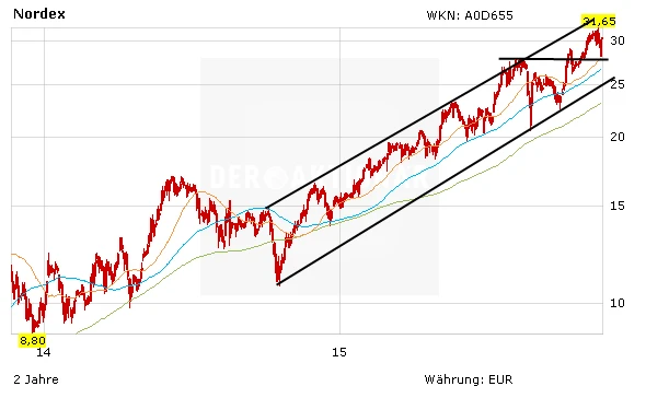 Mit den guten Zahlen und dem Ausblick bis 2018 im Rücken sieht DER AKTIONÄR weiterhin Potenzial für die Nordex-Aktie. Die Märkte haben die Terror-Anschläge in Paris weggesteckt. Gut möglich, dass Nordex bis zum Jahresende den Widerstand aus dem Jahr 2008 bei 32,67 Euro anpeilt.
