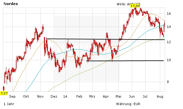 Der Folgeauftrag aus Polen unterstreicht die positive Entwicklung von Nordex. Zu Beginn der Handelswoche wurde deutlich, dass die Nordex-Aktie in einem freundlichen Gesamtmarkt überproportional zulegen kann. Dennoch: Auch der Windanlagenbauer wird sich dem Trend des Gesamtmarktes nicht entziehen können. Der DAX neigt weiterhin zur Schwäche. Es ist dadurch nicht auszuschließen, dass die Nordex-Aktie noch einmal in den Bereich zwischen 10 Euro und 12,50 Euro zurückfällt (worst case). Mit den vielen Neuaufträgen im Rücken bleibt das Papier langfristig interessant.