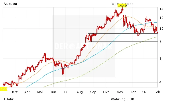 Die Aktienmärkte korrigieren. Alles andere als gute Voraussetzungen für die Nordex-Aktie aus ihrem Stimmungstief heraus zu kommen. Dennoch: Was die Zukunft angeht, so sind die Voraussetzungen gut, dass das Unternehmen den Aufwärtstrend der letzten Monate unter der Regie von Vorstand Jürgen Zeschky fortsetzt. Zeschky versprüht Optimismus: Für 2014 erwarte er einen Anstieg der Installationen auf dem Heimatmarkt um bis zu 30 Prozent, so der Nordex-Vorstand in einem Interview mit der Nachrichtenagentur Bloomberg. Und das obwohl die Regierung Schritte zur Begrenzung der Branchensubventionen ergreift.