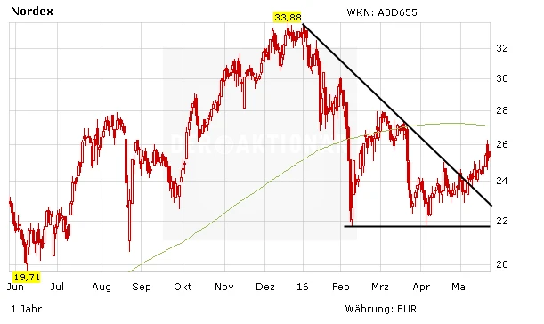 Auch DER AKTIONÄR bleibt für die Aktie von Nordex zuversichtlich gestimmt und rät Anlegern zum Kauf der TecDAX-Titel. Der Stoppkurs sollte weiterhin bei 21,10 Euro belassen werden.