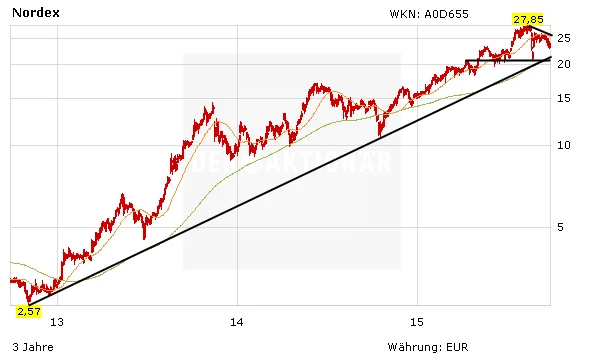 Relative Stärke ist ein guter Grund, um eine Aktien zu kaufen. Die Notierung von Nordex hält sich angesichts der China-, Weltwirtschafts-, Zinsunsicherheits- und Volkswagen-Ängste tatsächlich vergleichsweise gut. Die Deutsche Bank sorgte nun für ein positives Signal.