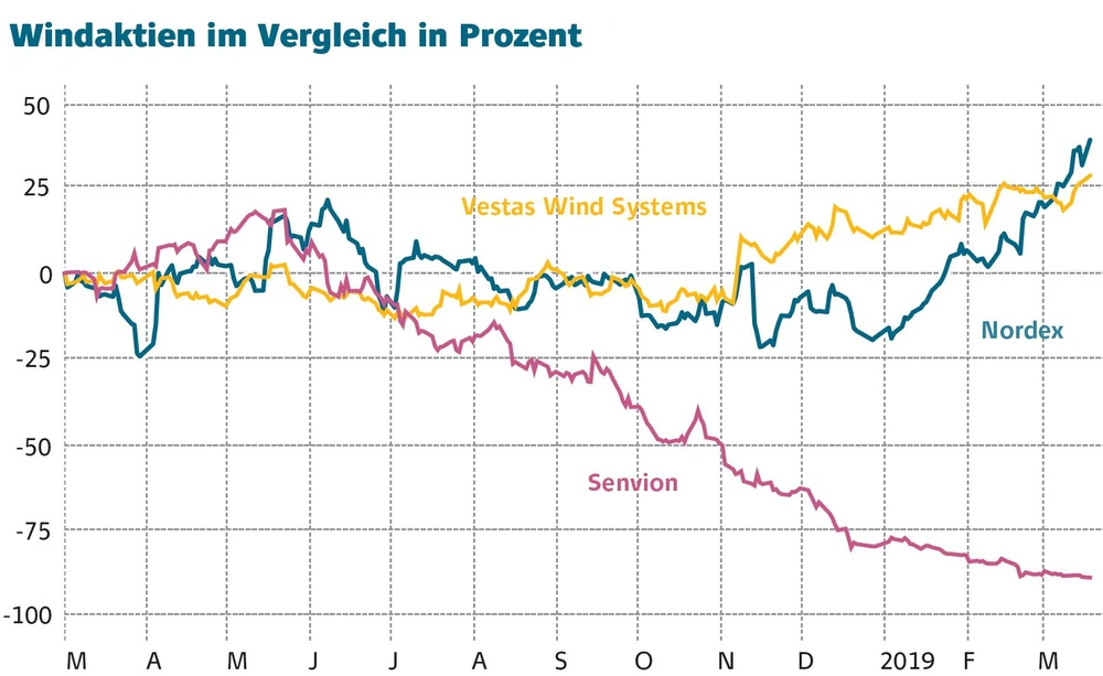 Das Comeback der Windaktien ist unübersehbar. Dank zahlreicher neuer Aufträge befinden sich Vestas, Siemens Gamesa oder Nordex im Höhenflug. Nur der kleinere Wettbewerber Senvion kann nicht mithalten und schlittert immer stärker in die Krise. Eine Trendwende bleibt schwierig, denn die Probleme sitzen tief.