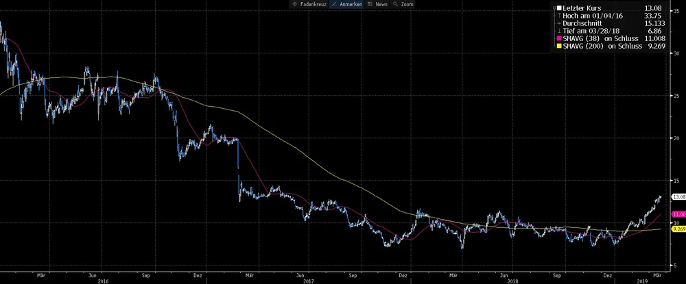 Klar ist, dass sich das Chartbild nach einer derartigen Rallye deutlich aufgehellt hat. Mit dem jüngsten Sprung über die 13,00-Euro-Marke ist die Aktie auf den höchsten Stand seit Mai 2017 geklettert. Damit wäre der Weg nach oben nun frei, um das alte Gap vom Februar 2017 zu schließen. Bis zur Marke von 16,35 Euro könnte damit noch ein Kurspotenzial von 25 Prozent gehoben werden.