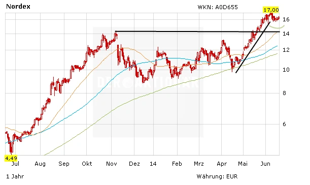 Die Aktie hat die Steilvorlage in Form von neuen Aufträgen zuletzt aufgenommen und ist über den Widerstand bei 14,50 Euro geklettert. Im Anschluss ging des für die Aktie bis auf 17 Euro nach oben. Das war dann doch etwas zu viel des Guten. Derzeit holt die Aktie Luft für den nächsten Anstieg. 20 Euro sind in den nächsten Monaten durchaus möglich. Investierte Anleger bleiben dabei. Der gute Newsflow sollte in den nächsten Wochen auf jeden Fall anhalten.