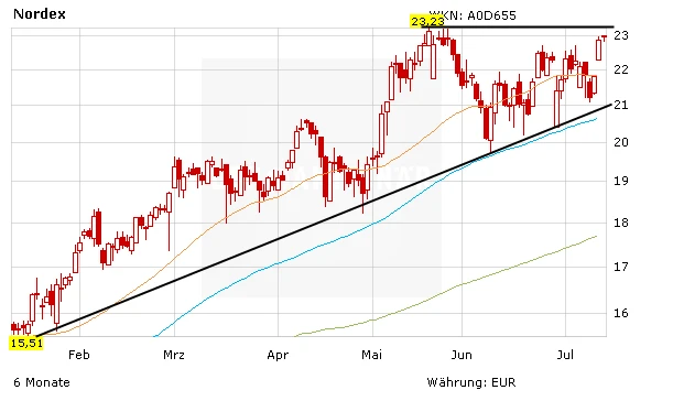 Wie zuletzt betont, glänzt die Nordex-Aktie durch Relative Stärke. Am 30.Juli wird der Windanlagenbauer die Zahlen für das zweite Halbjahr vorlegen. Sicherlich sind die Erwartungen der Analysten hoch, dennoch sollte Nordex erneut überzeugen. DER AKTIONÄR schließt auch nach wie vor eine Erhöhung der Prognose für das Gesamtjahr nicht aus! Die Aktie bleibt aussichtsreich.