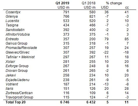 Q1-Umsätze mit innovativen Medikamenten (Quelle: Novartis)