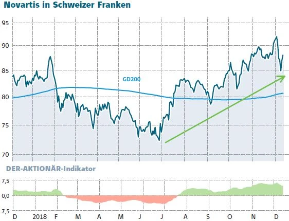 DER AKTIONÄR zählt Novartis ebenfalls weiterhin zu seinen Favoriten aus dem Pharmasektor. Erst vor Kurzem konnten die Schweizer mit neuen starken Ergebnissen zum Brustkrebsmittel Kisqali überzeugen. Kisqali gehört neben dem Herzinsuffizienz-Mittel Entresto und dem Antikörper Cosentyx zu den aussichtsreichsten Produkten für die kommenden Jahre. Die nächste charttechnische Hürde wartet in Form das 52-Wochen-Hochs bei 92,80 Schweizer Franken.