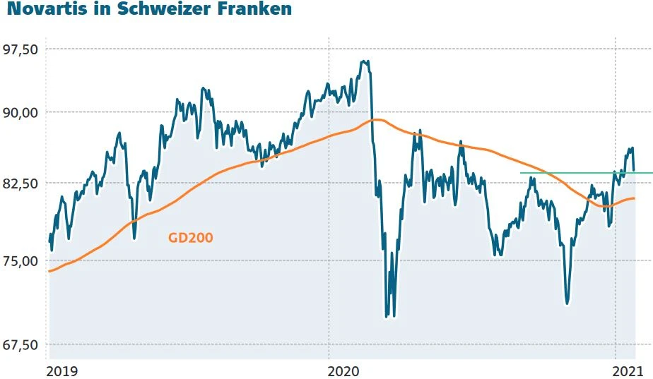 Mit dem heutigen Kursrückgang trübt sich das zuletzt starke charttechnische Bild bei der Aktie von Novartis erneut ein. Wichtig ist nun, dass die 200-Tage-Linie verteidigt werden kann. Ein erneut positives Signal würde die rasche Rückeroberung des Septemberhochs 2020 bringen. DER AKTIONÄR bleibt langfristig weiterhin zuversichtlich. Zudem bleibt Novartis ein verlässlicher starker Dividendenzahler.