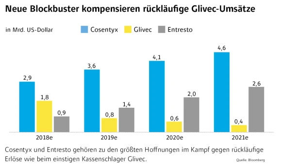 Für frisches Umsatzwachstum soll in Zukunft auch der Blockbuster Cosentyx sorgen. Im Kampf gegen schrumpfende Umsätze, unter anderem beim Blockbuster Glivec ist das Psoriasis-Mittel einer der großen Hoffnungsträger im Portfolio des Schweizer Pharmakonzerns.