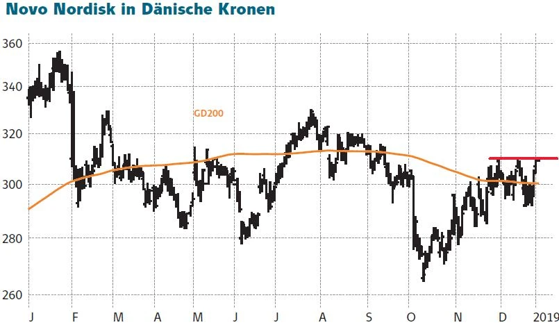 Das Papier befindet sich an einem wichtigen horizontalen Widerstand. Gelingt der Ausbruch, dürfte das Juli-Zwischenhoch 2018 rasch wieder ins Visier geraten. Zudem dürfte es in diesem Jahr spannend werden, was die mögliche Zulassung des Hoffnungsträgers Semaglutide in seiner oralen Variante angeht.