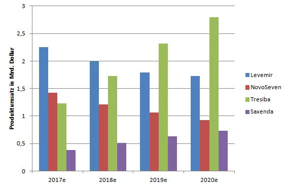 Und die hat Novo Nordisk bitter nötig: Denn die Blockbuster Levemir und NovoSeven haben längst ihren Zenit erreicht. Die Produktumsätze entwickeln sich rückläufig – doch die Dänen kompensieren dies mit verbesserten Insulinen und Wirkstoffen außerhalb des Diabetes Segmentes.