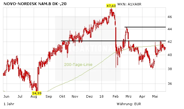 Als Markt- und Innovationsführer für Insulin-Präparate gehört Novo Nordisk für den AKTIONÄR in jedes langfristig ausgerichtete Depot. Mit dem Sprung über den Widerstand bei 42,10 Euro würde die Aktie ein frisches Kaufsignal generieren.
