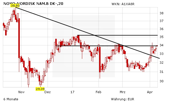Internationaler Preisdruck für Insulin und schwierige Marktbedingungen in den USA machten im vergangenen Jahr Novo-Nordisk schwer zu schaffen. Die Folge: Gekappte Prognosen und ein Kursrutsch von bis zu 40 Prozent. Nach monatelanger Konsolidierung steht die Aktie vor der Trendwende.