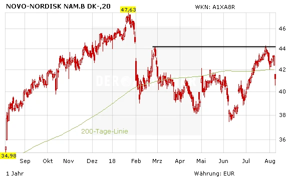 Ohne Frage: Novo Nordisk hat mit dem Zahlenwerk zum zweiten Quartal 2018 nicht überzeugt. Dennoch ist der Kursrücksetzer übertrieben. Schließlich haben die Dänen die Prognosen bestätigt. Anleger mit Weitblick nutzen das günstigere Niveau zum Einstieg.