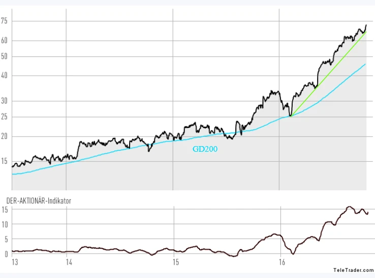 Nvidia überzeugt auf ganzer Linie. Die Geschäftsentwicklung spiegelt sich im Chart eindeutig wider. Hinzu kommt die Fantasie rund um die Themen autonomes Fahren und Robotik, indem der US-Konzern beispielsweise mit Tesla kooperiert. In den vergangenen Tagen erhielt die Aktie erneut einen Schub und markierte ein neues Allzeithoch. Sicherlich bewertet der Markt die Papiere mit einem KGV von 31 für 2017 recht hoch. Angesichts der positiven Aussichten und einem Wachstum von 50 Prozent in diesem Jahr jedoch zu Recht. DER AKTIONÄR bleibt bei seiner Einschätzung: Rücksetzer sind Kaufkurse.