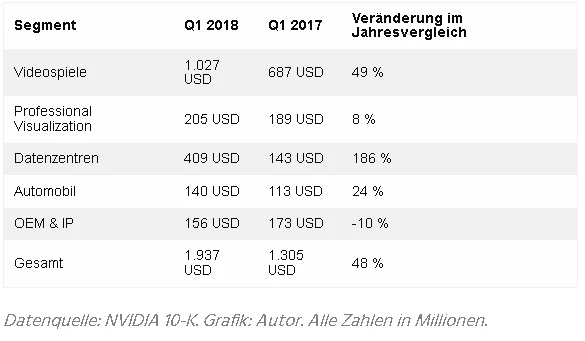 Schon jetzt wächst der Bereich im Nvidia-Konzern rasant und steuerte im letzten Quartal 140 Millionen Dollar zu. Dies entspricht einem Wachstum von 24 Prozent. Lediglich das boomende Geschäft mit Chip-Lösungen für Videospiele und Datenzentren brummt noch mehr.