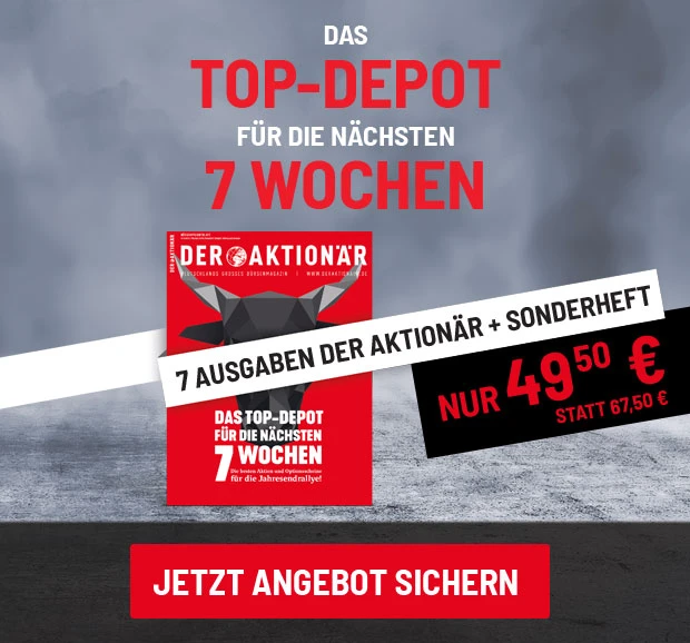 Besonderes Schmankerl: Sie profitieren nicht nur von den Tipps, sondern auch von einem besonderen Verlagsangebot. Die sieben regulären Ausgaben des AKTIONÄR sowie das Sonderheft erhalten Sie zum attraktiven Kennenlern-Preis von 49,50 Euro statt 67,50 Euro und sparen so über 25 Prozent gegenüber dem regulären Verkaufspreis.