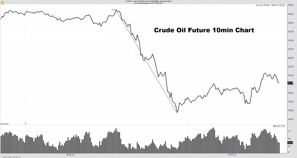 Das war eine heftige Bewegung gestern - mutige Trader nutzen den Rücksetzer für einen Long-Einstieg. Grünes Licht, solange der Future nicht nachhaltig unter die Dollar-Marke 60 fällt.
