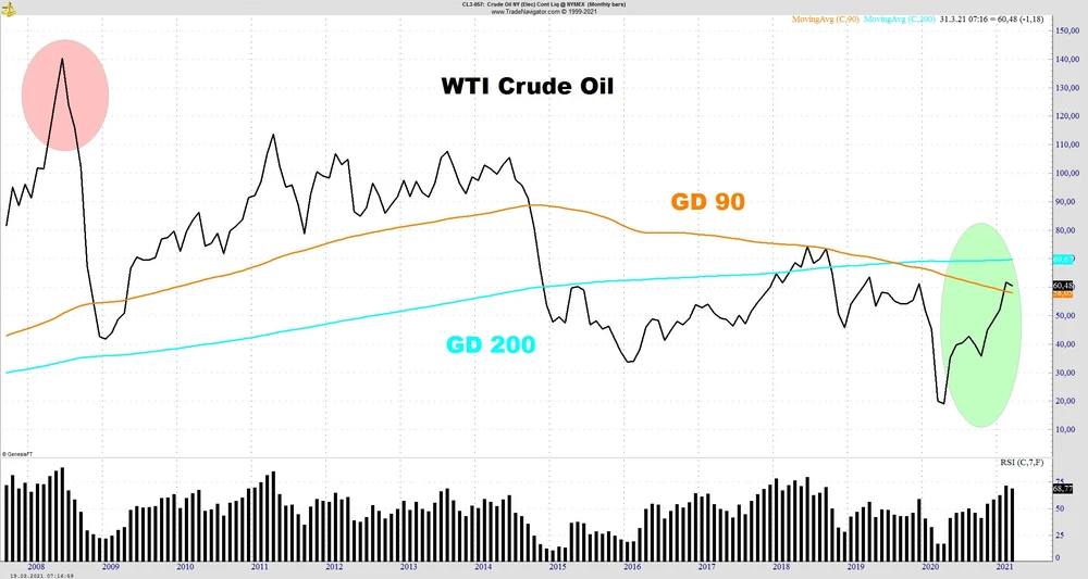 Das sagt zumindest die amerikanische Investment Bank Goldman Sachs, die den gestrigen Kurseinbruch als Kaufgelegenheit sieht. Die Analysten sehen Brent Crude Öl noch in diesem Sommer bei 80 Dollar pro Barrel und erwarten einen signifikanten Anstieg der Nachfrage. Das alte Kursziel von 65 Dollar wurde um 23 Prozent angehoben, einer der Gründe ist die weiter anziehende „Durchimpfung“ in den USA, und eine damit verbundene wirtschaftliche Erholung.