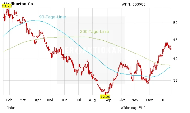 Anleger, die bereits der Empfehlung in Ausgabe 14/2016 des AKTIONÄR folgten, lassen bei der trendstarken Halliburton-Aktie die Gewinne weiter laufen. Für einen Neueinstieg oder Zukäufe bieten sich kleinere Rücksetzer an, die nach der gewaltigen Monatsperformance dieses Titels wahrscheinlich sein dürften. Das Kursziel wird angehoben auf 52,00 Euro – der Stopp nachgezogen auf 35,50 Euro.