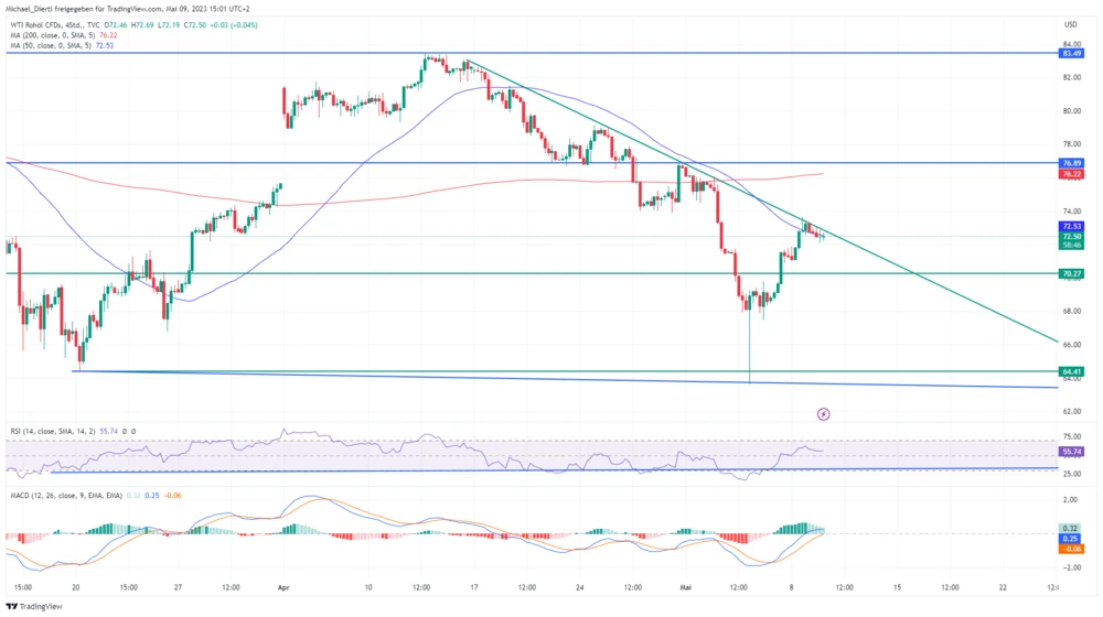 Denn seit dem Flash-Crash am 4. Mai versucht WTI einen Boden einzuziehen. Dieser bestätigt sich allerdings erst, sobald der Kurs die kurzfristige Abwärtstrendlinie überwindet unter der er aktuell konsolidiert.