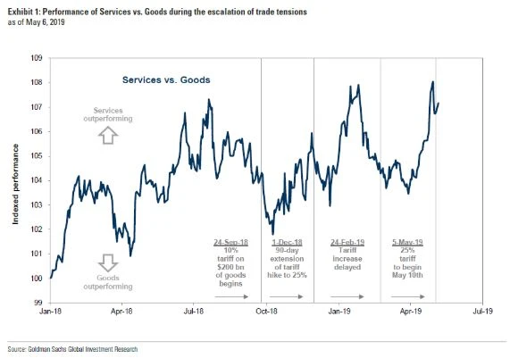Die Wertpapier-Spezialisten von Goldman Sachs haben einen Plan für einen eskalierenden Handelsstreit. Die Strategen empfehlen Aktien aus dem Dienstleistungs-Sektor, denn diese dürften outperformen.