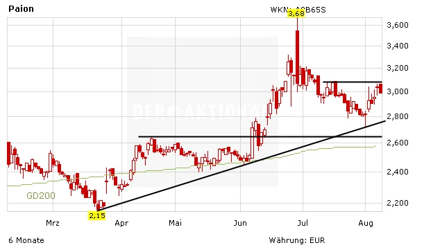 Auch DER AKTIONÄR bleibt zuversichtlich für die Aktie von Paion. Das Potenzial von Remimazolam ist nicht zuletzt angesichts der immer größeren werden Einsparbestrebungen in den Branche enorm. Zudem ist das Sicherheitsprofil überzeugend. Das nächste Kursziel ist das Jahreshoch, das vor Kurzem bei 3,68 Euro markiert wurde.