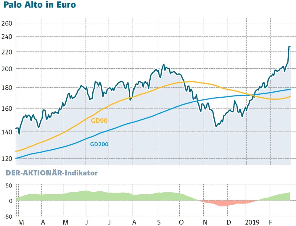 DER AKTIONÄR hat Palo Alto Networks bereits seit Januar 2017 auf der Empfehlungsliste – Leser, die der Empfehlung gefolgt sind, freuen sich damit über ein Kursplus von rund 74 Prozent. Zuletzt wurde die Aktie in der aktuellen Ausgabe 09/2019 empfohlen. DER AKTIONÄR empfiehlt nach den Zahlen: Gewinne laufen lassen und dem Wachstumstrend folgen.
