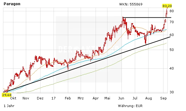 Zwar ist Aumann kein 100%-iger E-Mobilitäts-Play, da erst rund 35 Prozent der Umsatze in der Elektromobilität erzielt werden, dennoch lohnt sich ein Vergleich. Aumann wird derzeit mit einem Kurs-Umsatz-Verhältnis von 4 bewertet. Voltabox könnte also durchaus mit 150 Millionen Euro plus X an die Börse gebracht werden. Zum Vergleich: Die gesamte Paragon AG bringt aktuell knapp 300 Millionen Euro auf die Waage.