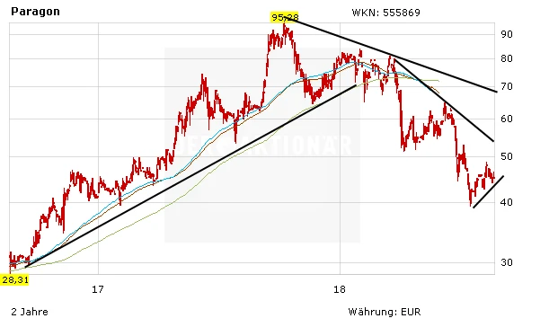 Die Aktie von Paragon ist in den letzten Wochen deutlich unter die Räder gekommen. Besonders die Umstellung auf die Rechtsform einer KGaA, Kommanditgesellschaft auf Aktien, ist bei den Anlegern nicht gut angekommen. Die Aktie hat knapp über 40 Euro wieder gedreht. Die 38-Tage-Linie wurde geknackt, wodurch ein neues Kaufsignal generiert wurde. Paragon ist gut aufgestellt. Vor allem der Geschäftsbereich Elektromobilität boomt. Im Nebenwertebereich ist die Aktie eine Wette wert.