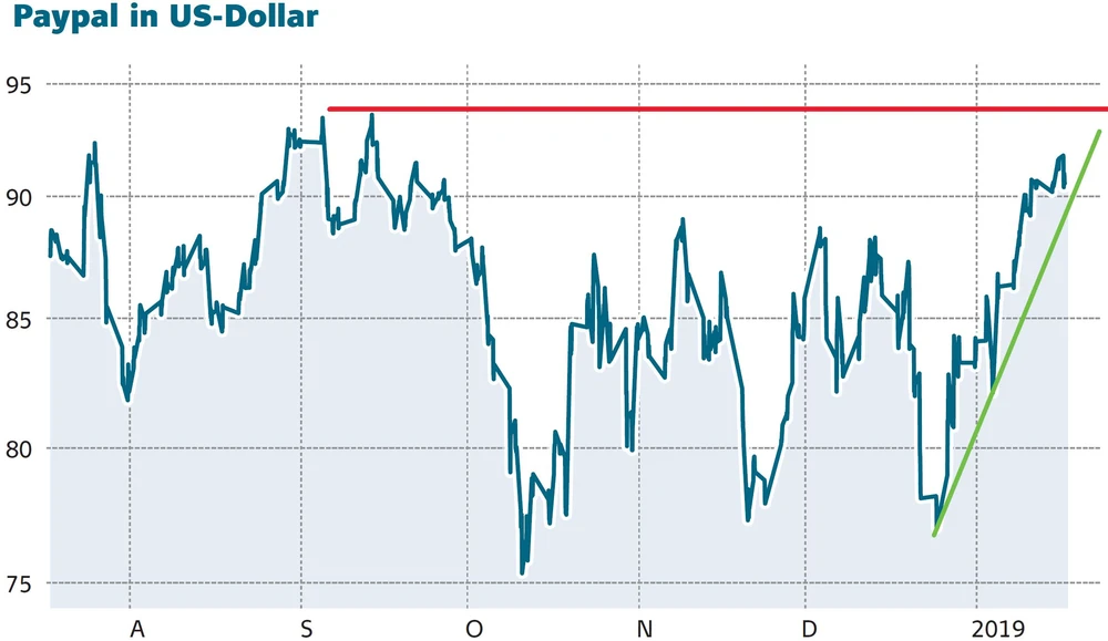 Seit der Empfehlung des AKTIONÄR notiert Paypal mit 140 Prozent im Plus. Mit einem 2019er-KGV von 31 ist Paypal kein Schnäppchen mehr. Allerdings sind die Wachstumsraten hoch, und die Marke Paypal ist stark. Der Aufwärtstrend ist intakt und hat jüngst noch mal an Dynamik gewonnen. Ein neues Rekordhoch ist nur eine Frage der Zeit.