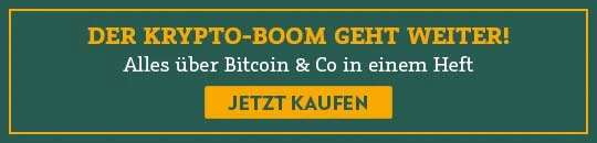 Sie finden Kryptowährungen spannend und wollen ebenfalls vom Kryptoboom profitieren? Dann holen Sie sich jetzt das Heft DER AKTIONÄR SPEZIAL zu Bitcoin & Co. Lesen Sie darin alles Wissenswerte zu Bitcoin, Ethereum und anderen Top-Coins sowie zu aktuellen Megatrends wie den Non-Fungible Token, kurz NFT. Profitieren Sie außerdem von exklusiven Interviews und der geballten Expertise absoluter Krypto-Experten wie Michael J. Saylor, Gerd Weger oder Max Lautenschläger. Nutzen Sie Ihre Chance und starten Sie mit diesem DER AKTIONÄR-Sonderheft in das neue Zeitalter der digitalen Währungen.