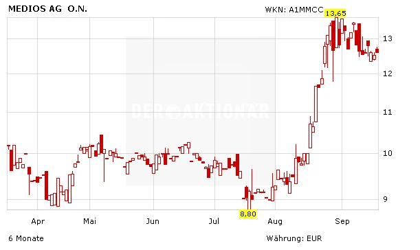 Nach der starken Rallye im August hat die Aktie von Medios zuletzt eine Verschnaufpause eingelegt. Die derzeitige Konsolidierung bietet noch nicht investieren Anlegern die Chance zum Einstieg. Medios hat sich in einer höchst aussichtsreichen Nische hervorragend positioniert und dürfte vom Trend der personalisierten Medizin überproportional profitieren können.