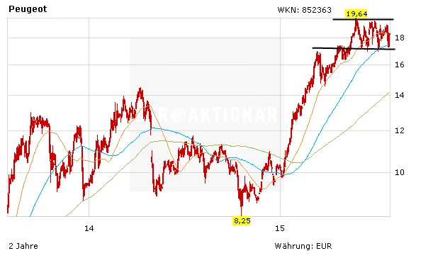Daimler ist hervorragend positioniert, das steht außer Frage. Die Aktie bleibt der Favorit unter den deutschen Autobauer. Volkswagen hat mit dem sich schwächelnden Markt in China zu kämpfen, 60 Prozent der Gewinne aus dem Reich der Mitte. Die Aktie sucht derzeit nach einem Boden. Einzig und alleine die Peugeot-aktie sieht derzeit technisch sehr gut aus. Die guten Zahlen untermauern die Entwicklung.