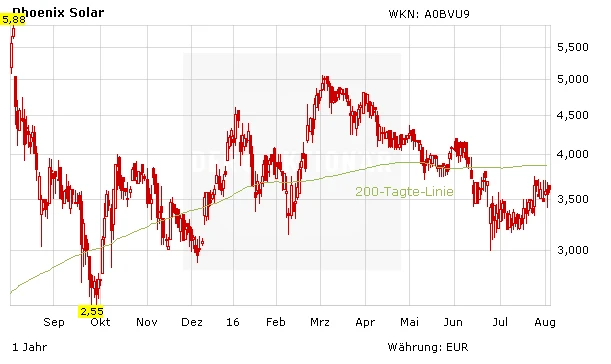 Zum Halbjahr belief sich der freie Auftragsbestand auf über 180 Millionen Euro. Zuletzt konnte ein Auftrag aus Texas in Höhe von 19,6 MWp vermeldet werden. Außerdem verkaufte Phoenix Solar ein Photovoltaik-Kraftwerk in Frankreich. Der Erlös wird zur Schuldentilgung verwendet. An guten Meldungen mangelte es de facto zuletzt nicht.