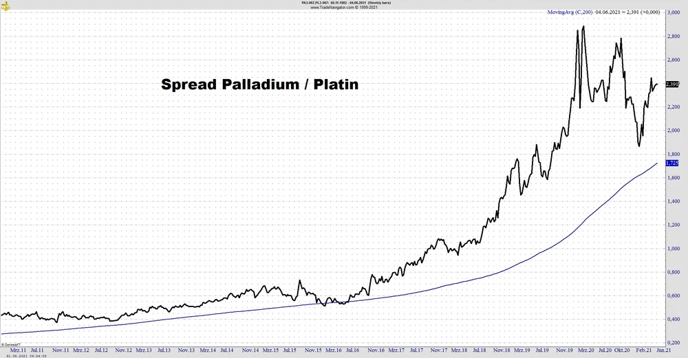 Mit der Bekanntgabe Chinas gegen eine „exzessive“ Rohstoff-Spekulation vorzugehen startete die Volksrepublik einen weiteren Versuch, verbal auf die drohende Inflation einzuwirken. Aufgrund seiner Bedeutung als Industrie-Metall hat sich Platin im Vergleich zu den anderen Metallen deutlich schwächer entwickelt. Für zusätzliche Belastung könnte die angebliche Positionsauflösungen eines Spread Trades Long Platin versus Short Palladium gesorgt haben. Bereits in der Vergangenheit führten Spread Trades zu teilweise massiven Kursbewegungen. Auf dem Weg nach unten stellt die 1.150-Dollar-Marke aktuelle eine wichtige Unterstützung dar.