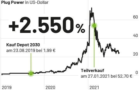 Der frühe Einstieg bei Plug Power im Depot des Hot Stock Report bei 1,99 Euro hat zu hohen Gewinnen für die Leserschaft geführt, zumal es gelang, nahe dem Hoch der Wasserstoffeuphorie einen großen Teil der Gewinne zu realisieren: Rund 2.550 Prozent Gewinn und eine Ver-26-fachung des eingesetzten Kapitals war die Folge.
