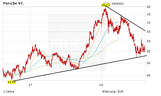 Auch Analyst Frank Schwope von der NordLB sieht die Porsche-Strategie grundsätzlich positiv. Sein Kursziel lautet 70 Euro. Die wesentliche Beteiligung Volkswagen habe trotz Nachwirkungen des Diesel-Skandals mit dem operativen Ergebnis des ersten Halbjahrs 2018 überzeugt, schrieb Schwope in einer Studie. Das zweite Halbjahr könnte mit Blick auf die neuen Schadstofftests sowie die Zunahme weltweiter Handelskonflikte aber schwieriger werden.