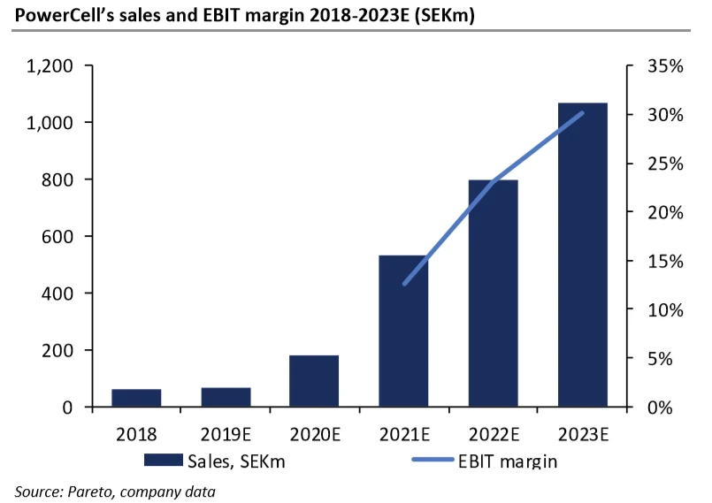 PowerCell werde bis 2022 keine Steuern zahlen, so Pareto Securities in der Studie. Zudem sieht die Investmentbank die Chance, dass das Unternehmen aufgrund seiner firmeneigenen Technologie ein potenzieller Übernahmekandidat ist.