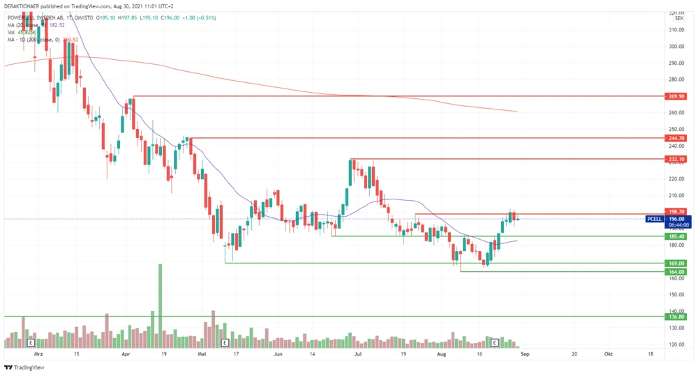 Der Quartalsbericht vom 20. August kam zunächst nicht besonders gut bei den Investoren an, obwohl PowerCell das umsatzstärkste Quartal der Unternehmensgeschichte und einen optimistischen Ausblick vorlegen konnte. Dann folgte die Kehrtwende und die Aktie erholte sich vom Jahrestief bei 164 Schwedische Kronen (SEK).